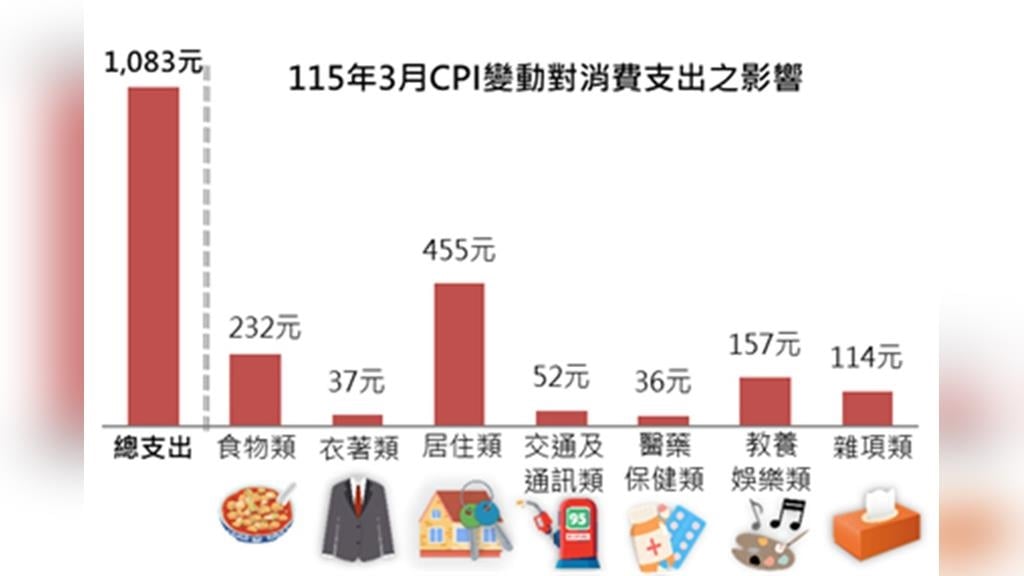 【原文出處】:支出多1083元 新北市消費者物價指數3月份漲1.55%