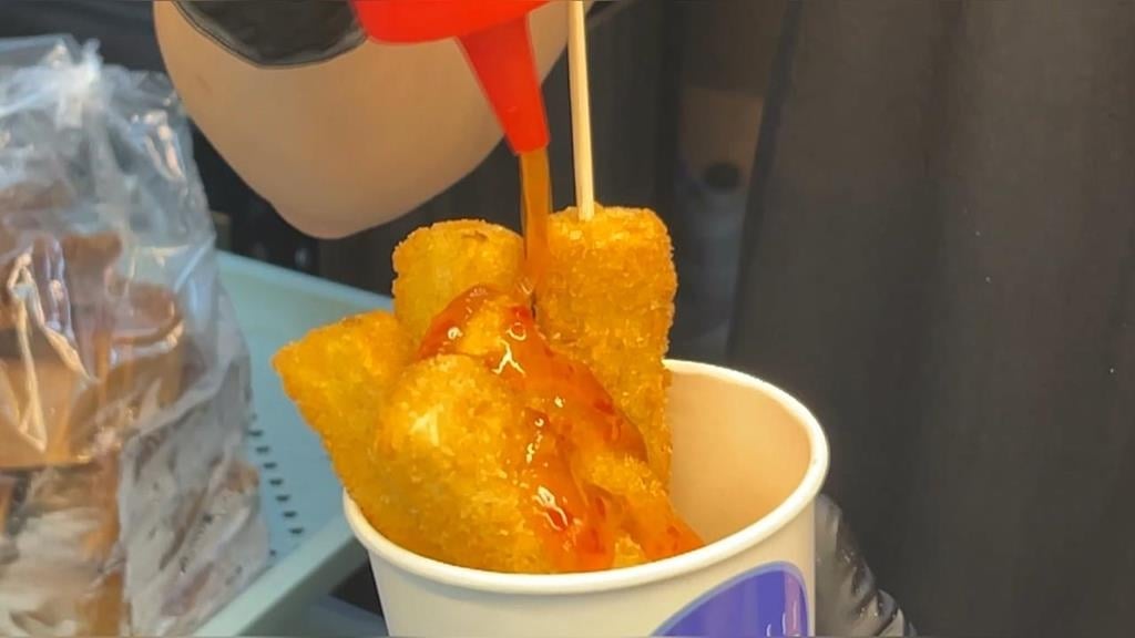 蘿蔔糕切成小塊加上五花肉雞蛋,各種配料,再淋上醬油後翻炒,傳統美食蘿蔔糕,不論炒的還是煎的都很常見,但你有吃過這用炸的蘿蔔糕嗎。切成條狀的蘿蔔糕,放入滾燙油鍋中開炸,加上特製醬料,成了全台唯一的蘿蔔糕薯條。老闆鄭竣端:「還可以就是有時候會搭配一些其他口味,像有泡菜的啦,椒鹽的啦,這些口味讓客人去做選擇。」客人:「 覺得他的外皮算是蠻酥脆,然後裡面又是那種,軟軟的蘿蔔糕的口感,就蠻特別,沒有吃過這種比較新奇的蘿蔔糕。」客人vs.記者:「感覺如何,很像臭豆腐的組合,臭豆腐但是是香的。」台式泡菜泰式酸辣和咖哩等等,口味超多樣,另外還有這款秋冬限定的台式年糕,加上蛋液好吃不黏牙,沾花生粉黃豆粉,或巧克力醬大人小孩都超愛。客人:「年糕就它還蠻軟的,好吃。」客人:「他上面有加那個蛋皮,所以吃起來有蛋的香味。」