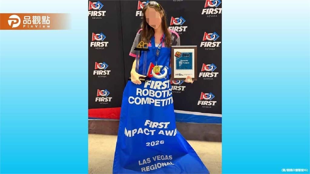 圖、文/品觀點鴻海創辦人郭台銘與夫人曾馨瑩的16歲大女兒妞妞,近日在美國拉斯維加斯參加FIRST機器人競賽區域賽中表現出色,與團隊共同奪得賽事最高等級的「影響力大獎」。曾馨瑩在Instagram限時動態中分享女兒的得獎照片,只見妞妞身披象徵最高榮譽的藍旗,手持獎盃和證書,將獎牌掛在脖子上與團隊成員一同慶祝。