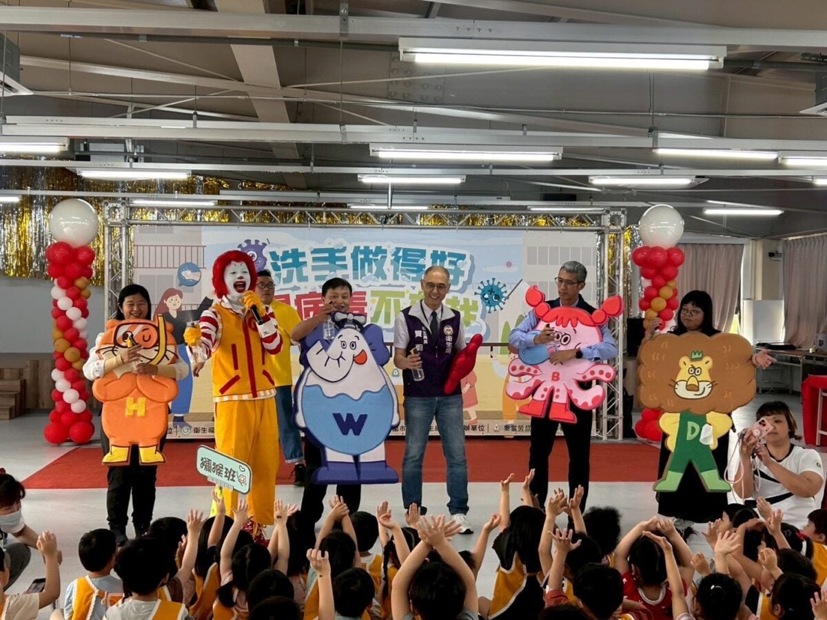 桃園市政府衛生局攜手麥當勞叔叔之家慈善基金會,舉辦「洗手做得好,腸病毒不來找」宣導活動。圖:衛生局提供