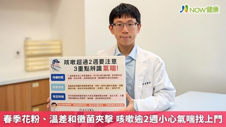 【NOW健康 林郁敏/新北報導】時序進入春天,正值賞花旅遊旺季,但春季同時也是呼吸道症狀較容易出現的時節。恩主公醫院胸腔內科主任杞建業分析,春季呼吸道的威脅主要來自花粉、溫差、黴菌三重夾擊,易先誘發過敏性鼻炎、結膜炎或皮膚過敏,若發炎反應未及時控制,進一步蔓延至支氣管,便會引發氣喘發作。