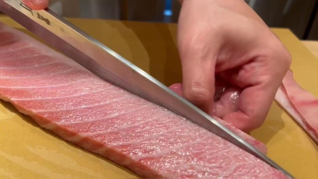 日本當天直送鮪魚中腹,在師傅俐落刀工下,瞬間變成薄片,客人用餐同時,也看了一場華麗的表演,