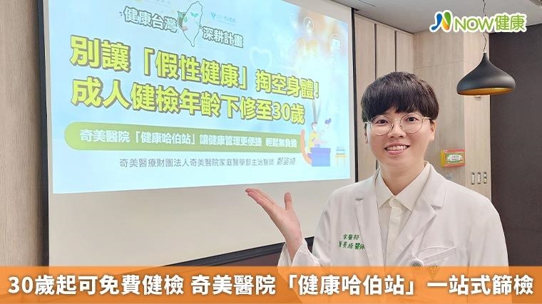 【NOW健康 林郁敏/台南報導】現代人因生活工作繁忙,飲食習慣不良再加上普遍缺乏運動,看似健康或是自覺健康的身體,在沒有任何症狀的情況下,早已累積慢性疾病或心血管疾病的風險。奇美醫療財團法人奇美醫院家庭醫學部主治醫師鄭姿綺表示,為了讓民眾能更早發現問題,由衛福部國健署提供的成人預防保健服務自2025年起正式將健檢年齡下修至30歲,奇美醫院也特別設立「健康哈伯站」,提供一站式整合篩檢服務。