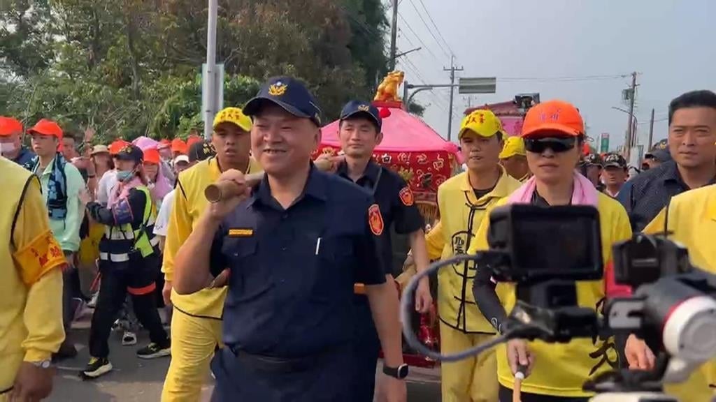 西螺分局第四組長黃貞修:「扛轎的感覺啊,跟走路一樣輕鬆愉快啊,就跟著前面腳步邁進,肩膀的感覺還是,有一點點重量啦不是很重,還好都可以承受。」