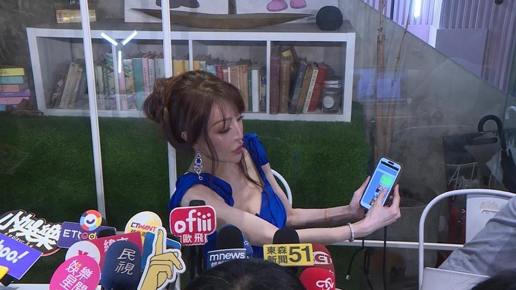 面對鏡頭,努力保持笑容,徐至琦一身藍色禮服現身,秀出律師函,要開告對方。