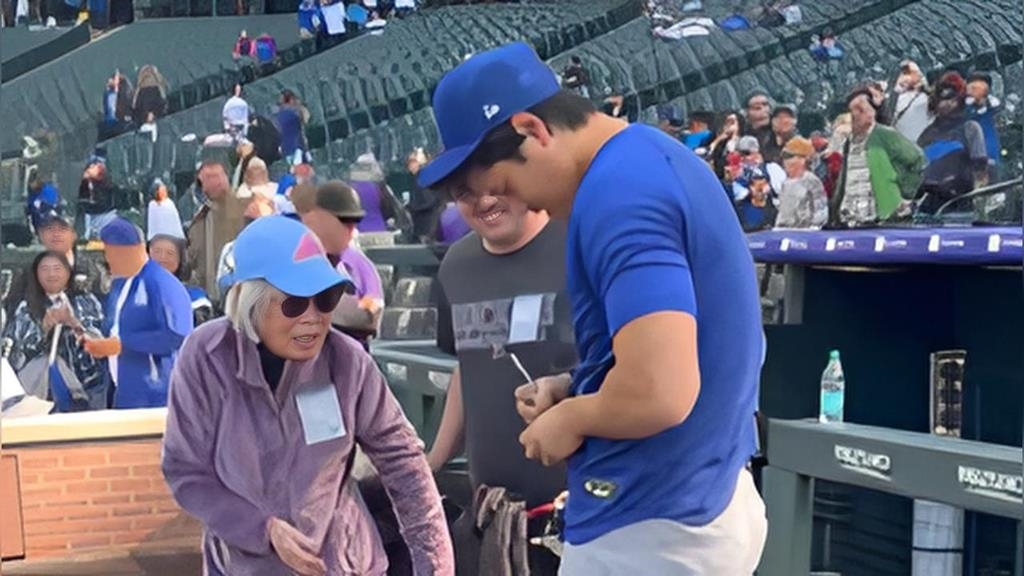 MLB美國職棒洛杉磯道奇巨星大谷翔平作客科羅拉多洛磯,今天賽前洛磯邀請百歲原爆倖存者中本桃代一起慶祝她的100歲生日,大谷翔平也在賽前做出「暖心舉動」。