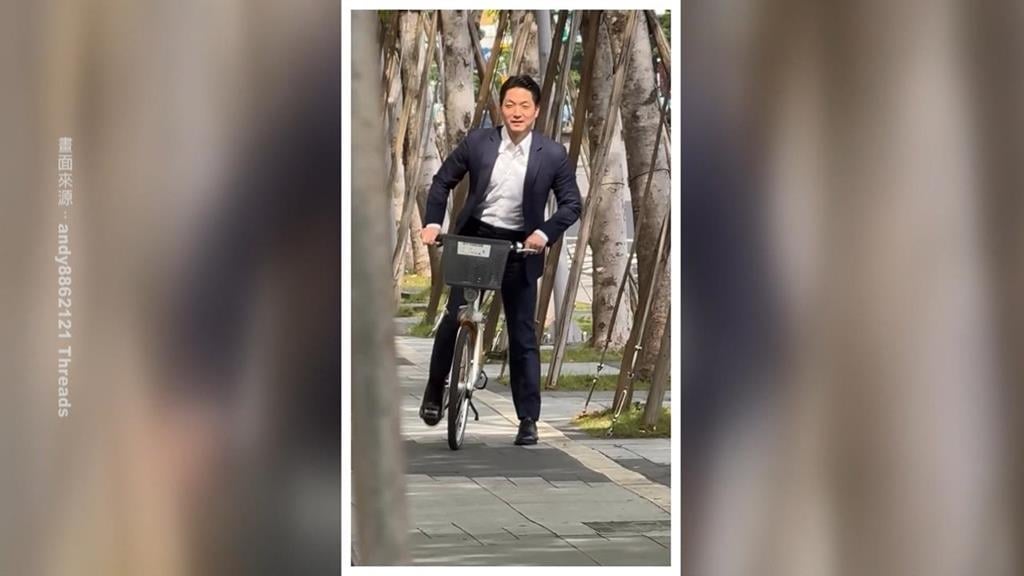 蔣萬安穿西裝騎UBike學馬、柯? 議員:不要再擺拍