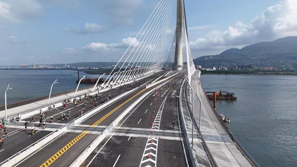 淡江大橋5月12號就要通車,橋上活動陸續舉辦,不過還沒通車,就爆出不少爭議。有民眾發現,機車道怎麼好像有點窄,扣除路肩、標線,實際寬度只有約1.6米,有人酸說像是要騎狗道,公路局趕緊出來止血、開記者會,強調符合設計規範。