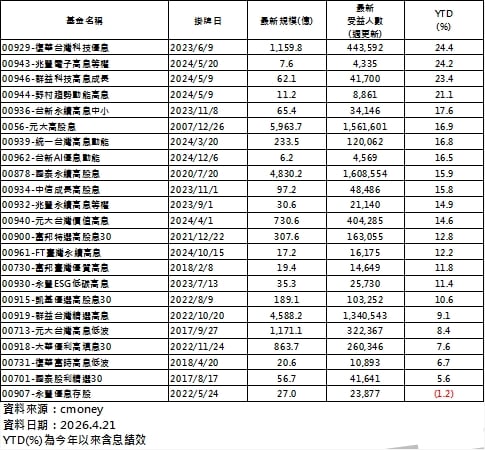 法人表示,Google最新一代TPU問世在即,市場預期聯發科作為台廠供應鏈之一,將能吃到商機大餅,近期聯發科股價反映受惠強勢表態,因此帶動「含聯發科」ETF表現亮眼。