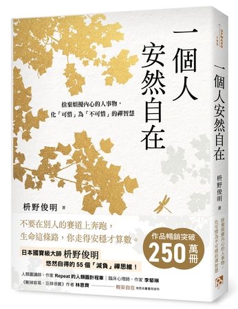 想要活得輕盈自在,重點就是將紛擾內心的人事物――主動放手、果斷捨棄!在禪的減法思維裡,真正的生活之道就是了解「別人是別人,我是我」。當我們把目光拉回自己身上,不用逞強託大,也不必自輕自貶,就能重新找回那個不倚賴物質,也能感受到幸福的本來面貌。