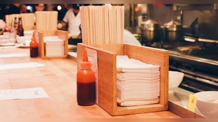 該名網友貼出在日式連鎖餐廳拍攝的照片,畫面中可見店內擺放大量滑面餐巾紙。她指出,這類紙巾「防水又抗油,到底要擦什麼?」對於擦手或清潔用途效果有限,因此對其廣泛使用感到不解。