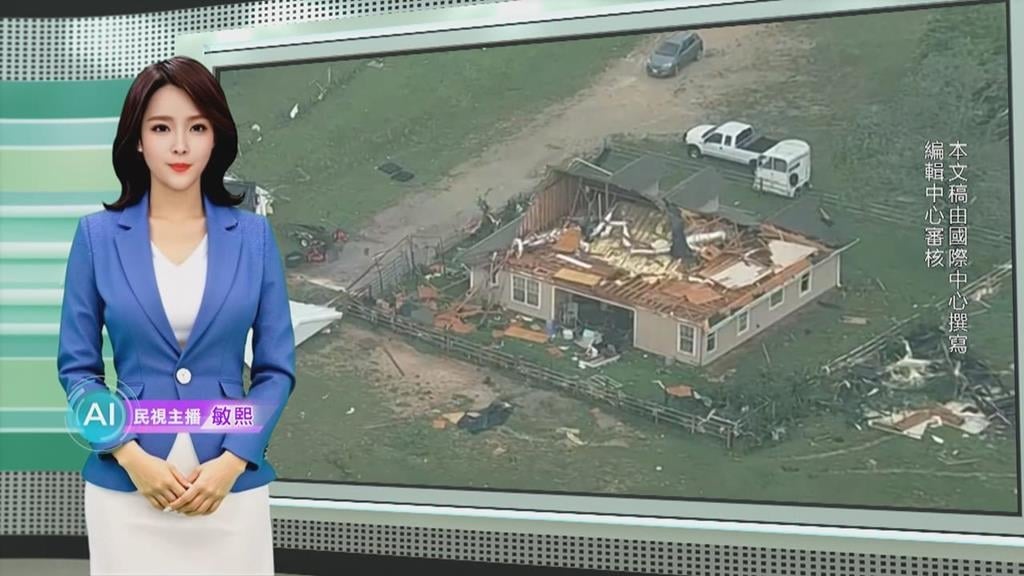 哈囉,大家好,我是民視AI主播敏熙,來看今天的國際氣象消息。龍捲風周末橫掃美國德州北部,造成至少2人死亡、多人受傷送醫。當地多郡居民房屋被吹翻,數十個家庭無家可歸。氣象預報,從德州、密西西比州到愛荷華州,可能出現冰雹及龍捲風等更惡劣的天氣。