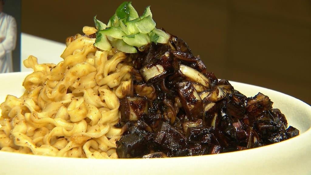 主持人:「韓國的炸醬,配上台灣的麻醬,來去做一個全新的體驗」。