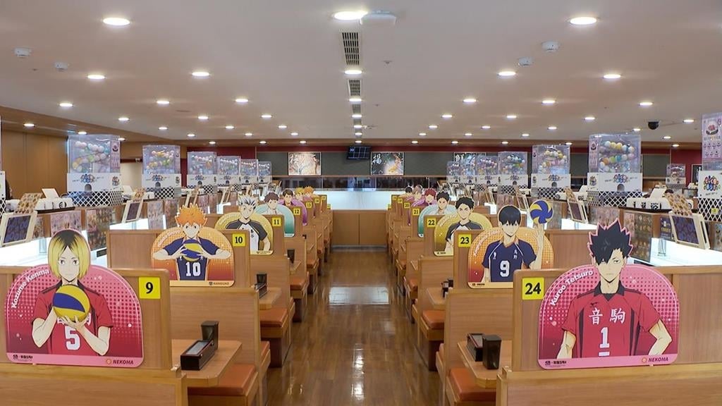 走進連鎖迴轉壽司店,迎面而來是滿滿的日本知名動漫IP,連鎖壽司業者,這回和"排球少年"聯名,除了主題店,還推出一系列限定周邊和扭蛋,就是要搶攻動漫迷的荷包。
