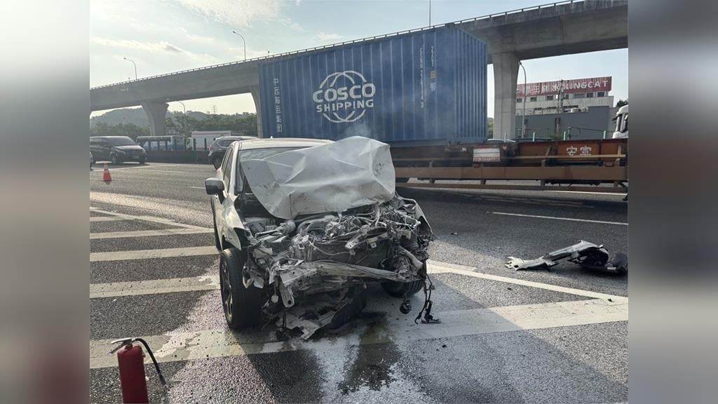 一名30歲陳姓男子駕駛小客車,行經國道1號南向48.6公里桃園路段,疑似因恍神撞擊前方51歲林姓男子駕駛的大貨車。圖:讀者提供